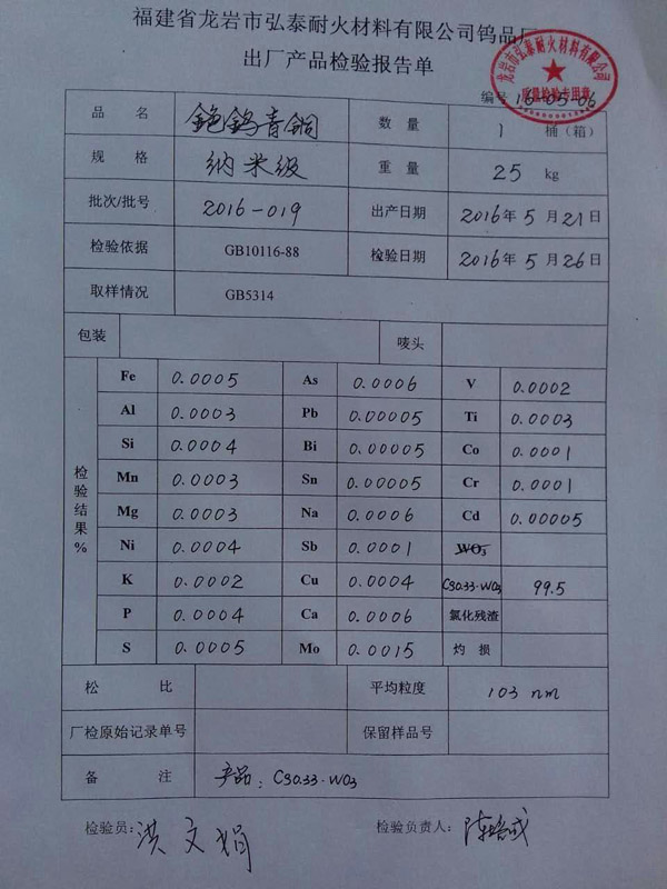 三氧化鎢檢測報告20170120